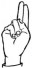 На ћирилици написано ВУКОСАВ ГРАНДИЋ састоји се из 14 слова [?]. Исписано ћириличном једноручном азбуком за глувонеме: